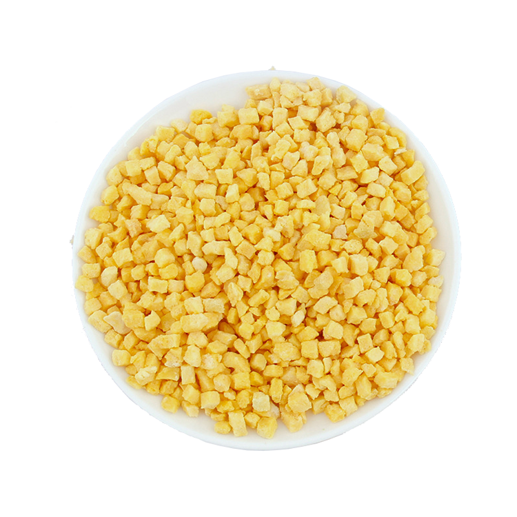Our company's freeze-dried fruit cubes are divided into two types: compound cubes and raw diced ones. Compound Ding is made by mixing various high-quality fruits, with a rich taste and balanced nutrition. It is very suitable for use in breakfast cereals, yogurt, and baked goods. The original diced fruit retains the natural shape and flavor of the fruit, which is pure and natural, without addition, and is suitable for direct consumption or cooking and Dim sum making. Whether it's compound diced or raw diced, our products undergo strict quality control to ensure that every bite can enjoy the pure fruit flavor.